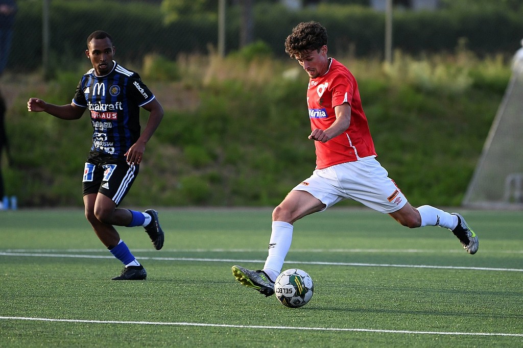 - Ett spännande värmländskt derby, det märktes på båda lagen att det var mycket prestige i matchen. Första halvlek har U17 mycket boll och kontroll på matchen och lyckas därav skapa några målchanser men inte tillräckligt många. Det höga markerings försvaret vid ”dödboll” fungerar bra och ger tillslut resultat då Svante Bratt lyckas vinna bollen högt och också själv säkert placera in 1-0. Ett resultat som står sig halvleken ut, säger Levi.