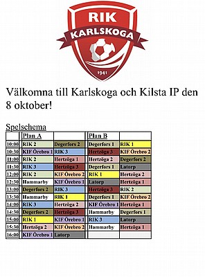Båda lagen har sin första match kl.10:00, därför har samtliga tjejer samling kl.09:15 på Kilsta IP söndag 8/10. Tänk på att det blir en lång dag, se därför till att tjejerna har med sig varma ombyten mellan matcherna, varm jacka, andra skor att ha mellan matcherna samt kanske underställ under matchkläderna beroende på väder och vind. Mat och dryck finns att köpa på plats, vi bjuder alla tjejer på hamburgare och läsk.